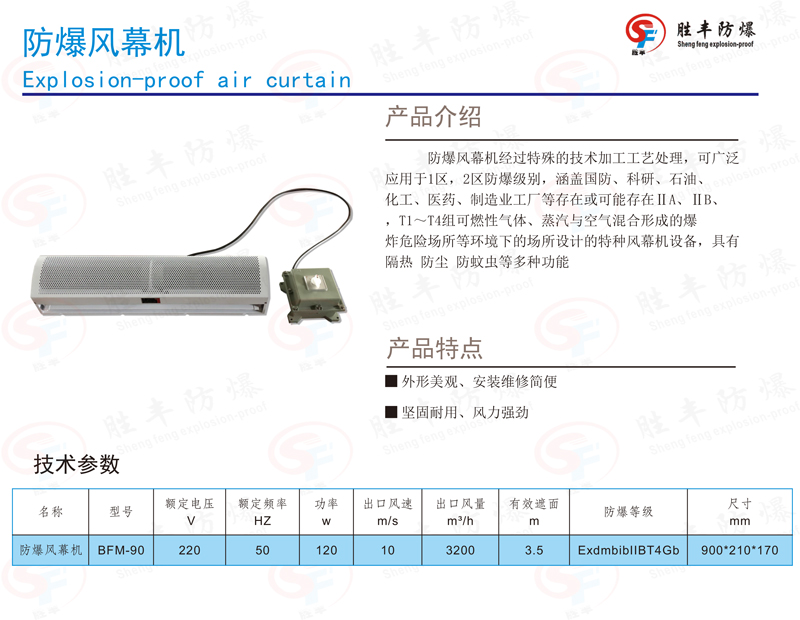 胜丰防爆风幕机常规尺寸有0.9米,1.2米,1.5米,2米